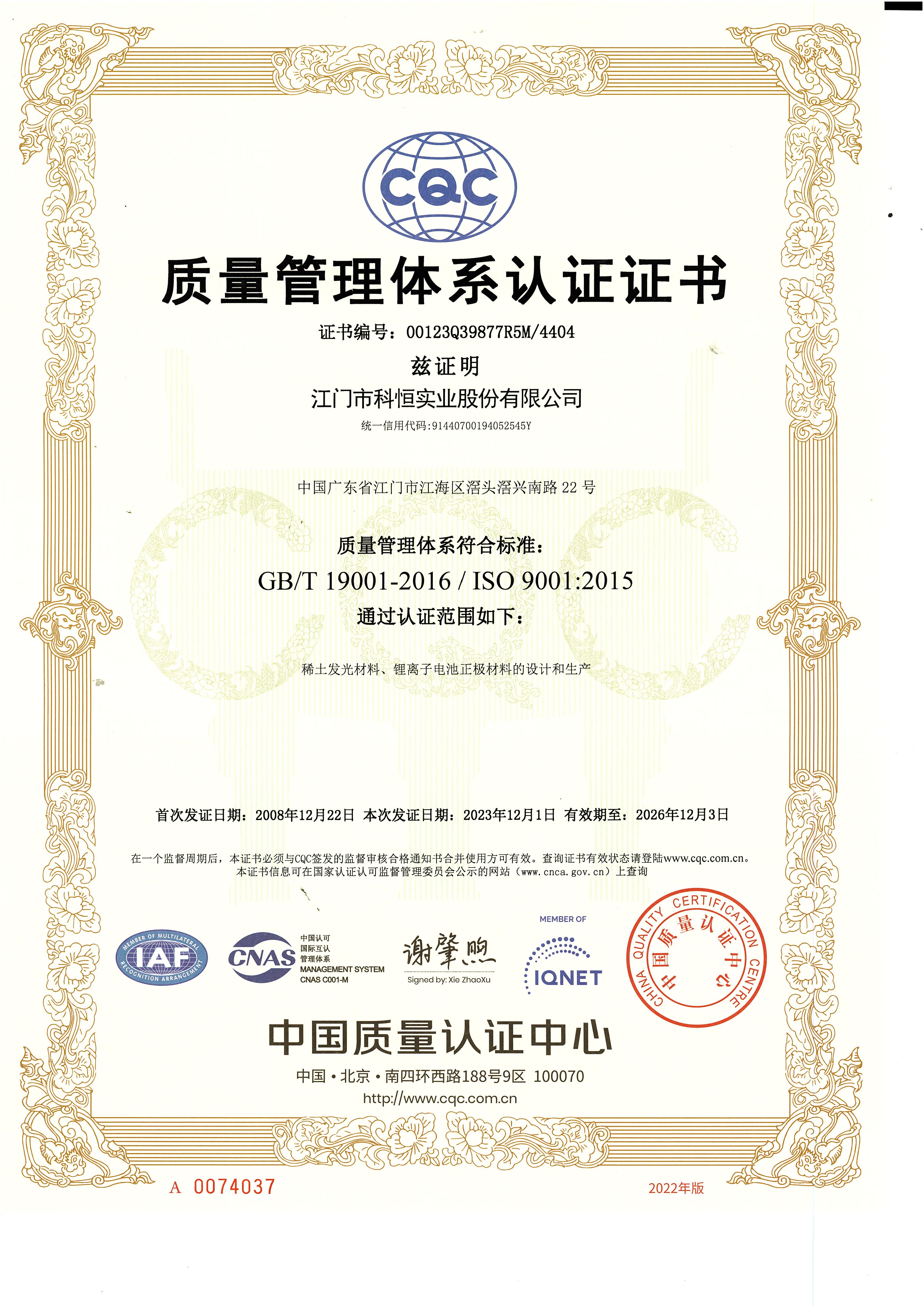 科恒堅(jiān)持“科技卓越、永恒追求、質(zhì)量第一、客戶至上”的質(zhì)量方針,設(shè)立各級(jí)質(zhì)量控制體系,保證產(chǎn)品質(zhì)量。公司先后通過(guò)了ISO9001質(zhì)量管理體系認(rèn)證和ISO14001環(huán)境管理體系認(rèn)證。公司以滿足客戶需求為宗旨,以卓越的科技成果、完善的制造過(guò)程,制造一流的產(chǎn)品、增值的服務(wù)、共享的價(jià)值,讓客戶滿意。